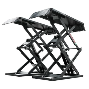 High-performance stationary hydraulic scissor lift designed for efficient vehicle and pallet handling between different building levels.